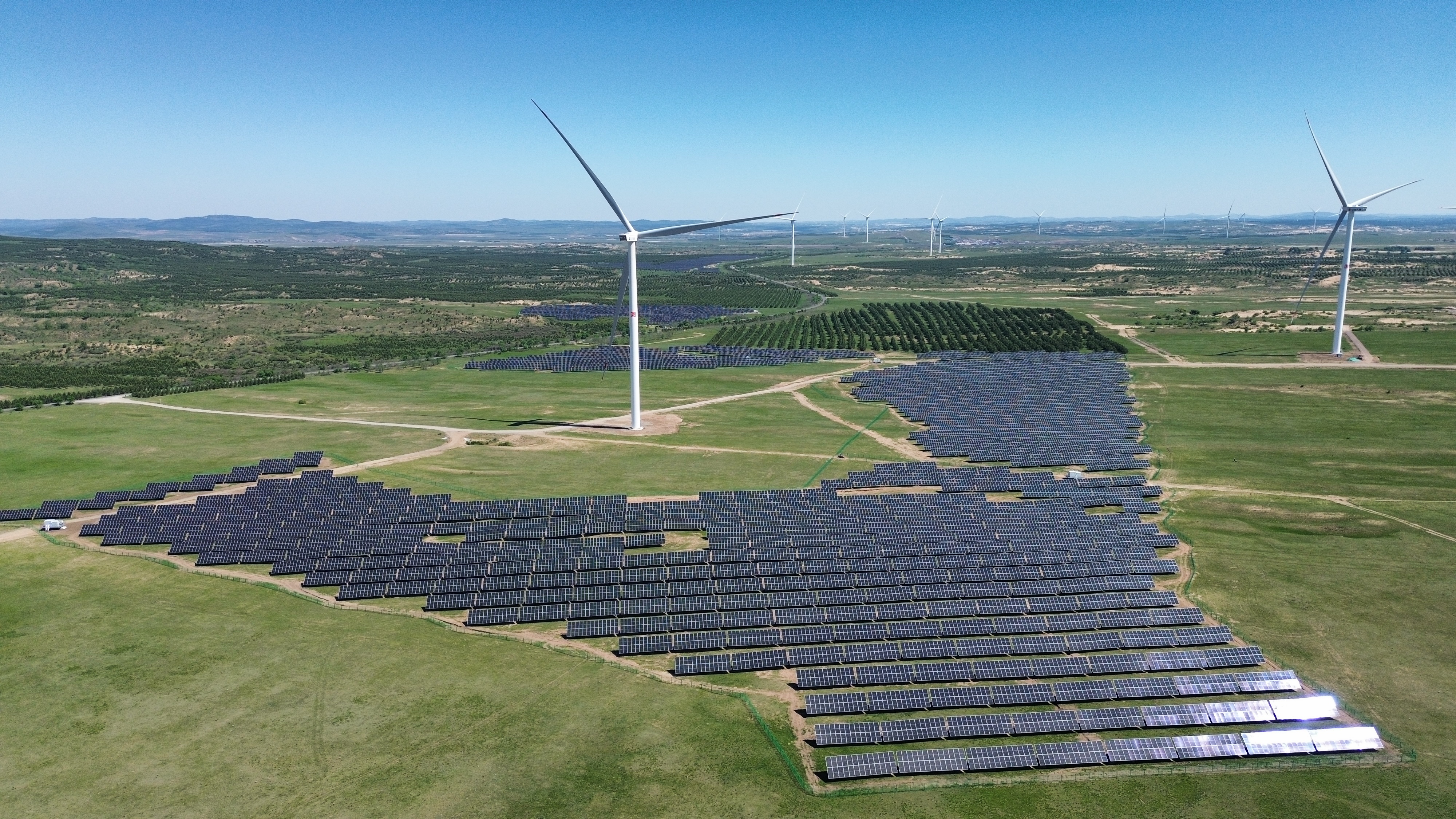 新能源分公司先后建成風(fēng)電及光伏項(xiàng)目224個,總?cè)萘?1948MW,其中建成光伏項(xiàng)目33個,容量1566MW;建成風(fēng)機(jī)機(jī)組4152臺。在建新能源項(xiàng)目25個,其中EPC風(fēng)電項(xiàng)目2個,容量100MW,EPC光伏項(xiàng)目7個,容量457MW。送變電工程公司在建光伏項(xiàng)目4個,容量420MW;在建風(fēng)電項(xiàng)目2個,容量74.5MW,風(fēng)機(jī)機(jī)組22臺。